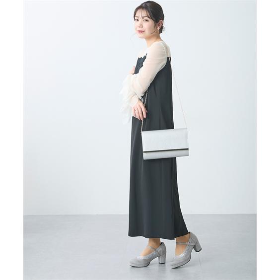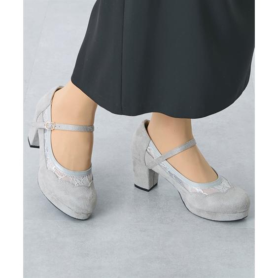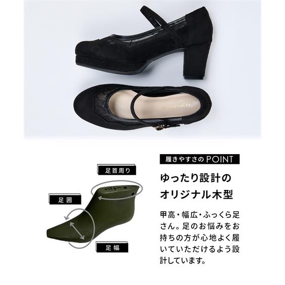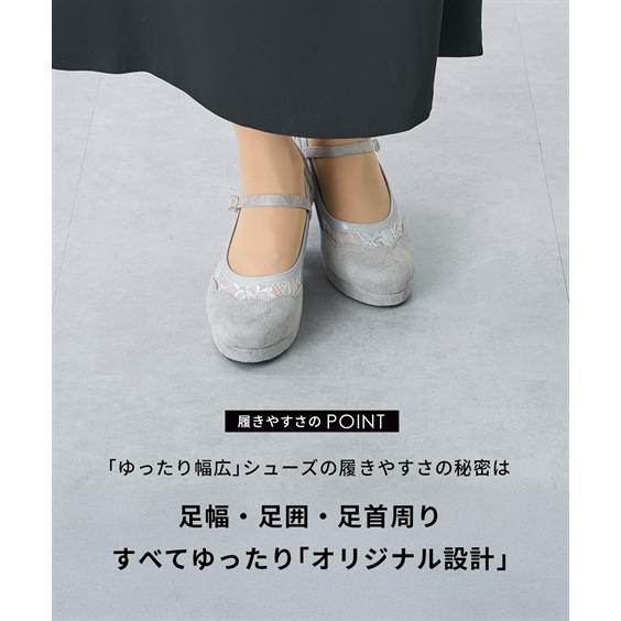 大きいサイズ レディース ゆったり幅広 ストーム付チュール ストラップ パンプス 低反発中敷 ワイズ4E 靴 シューズ 23.5/24/24.5cm ニッセン nissen