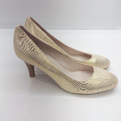 ◇ Θ Oriental Traffic ラメ入り ウッドヒール パンプス サイズ40 ゴールド系 レディース E