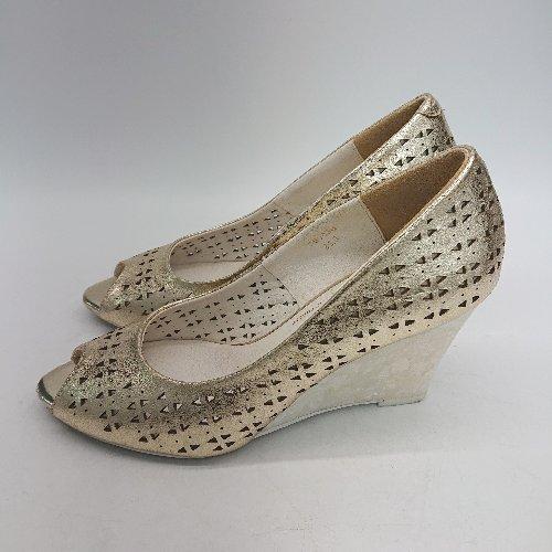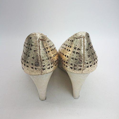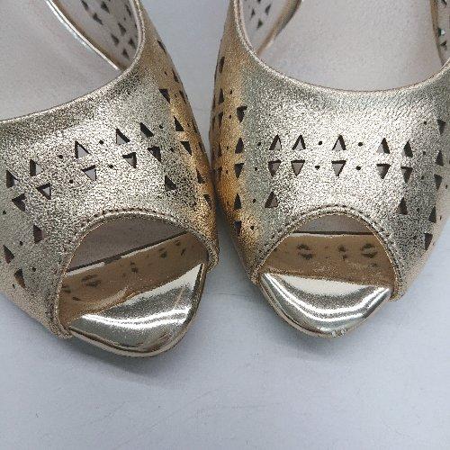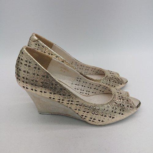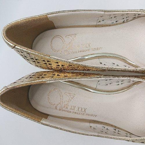 ◇ XXX IIX IIAA オープントゥ 厚底 無地シンプル 光沢感 パンプス サイズ24.5 ゴールド レディース E