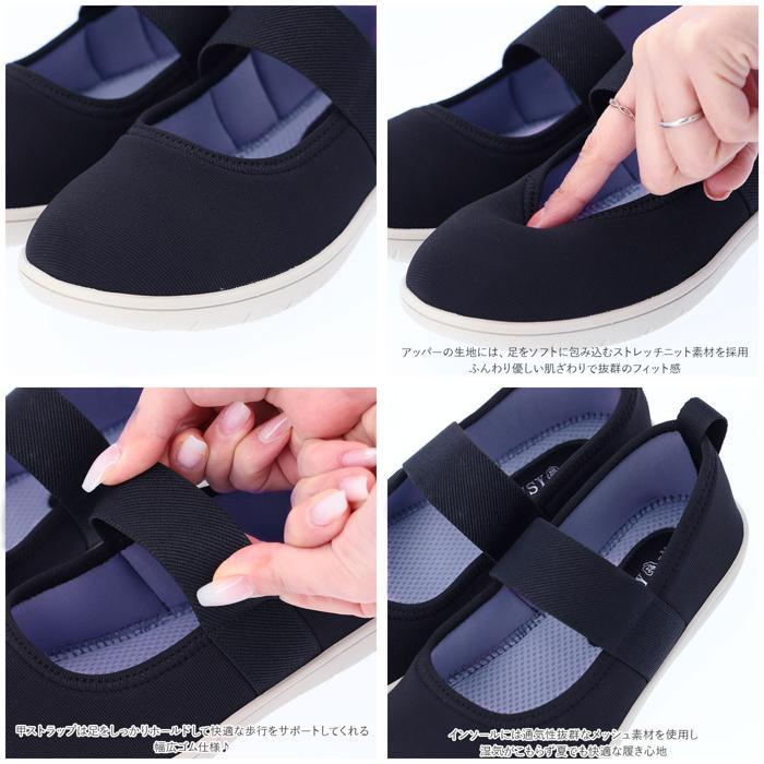 ☆ ネイビー L(24.0cm-24.5cm) パンプス ストラップ 通販 軽量 軽い フラット フィット 履きやすい 歩きやすい ストレッチ 柔らかい 靴