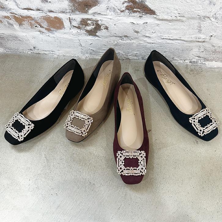 【23秋冬新作】ビジューバックル フラットパンプス