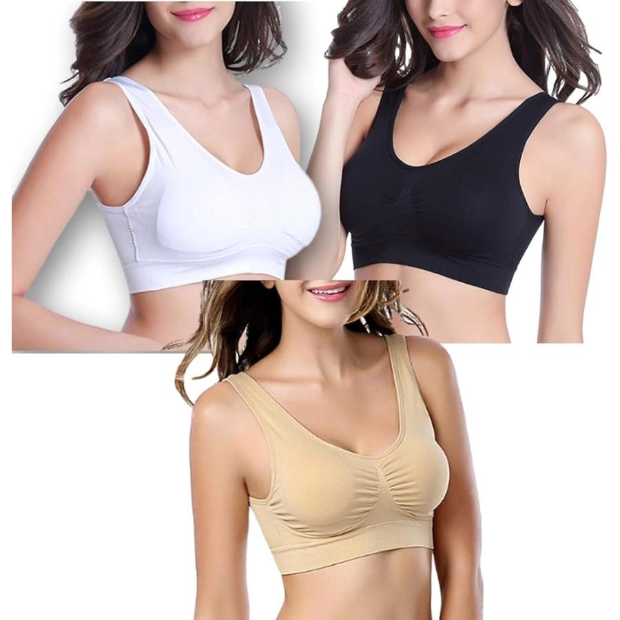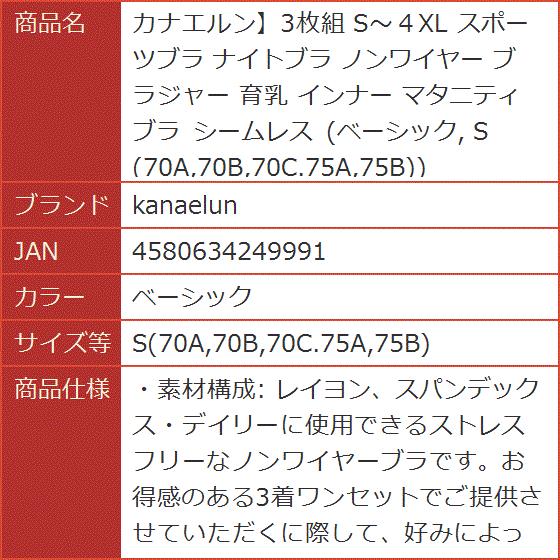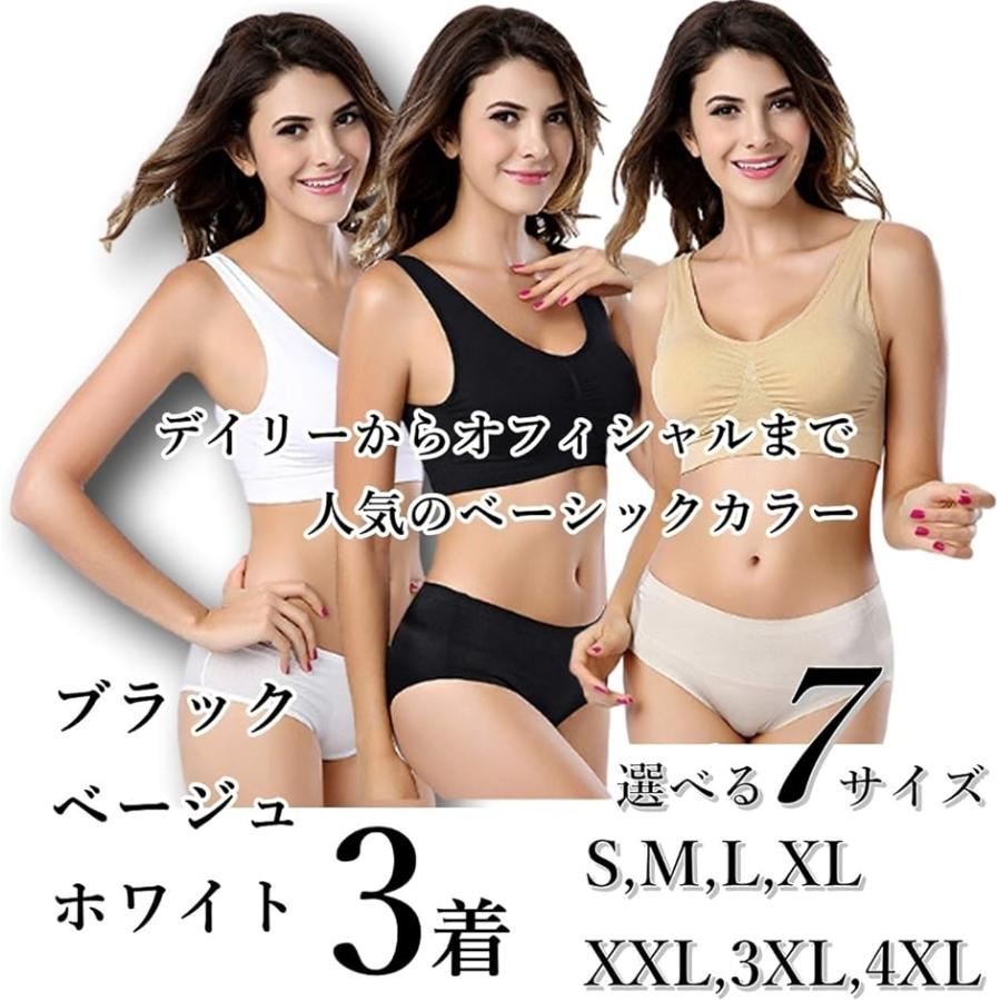 カナエルン3枚組 S〜4XL スポーツブラ ナイトブラ ノンワイヤー(ベーシック, S(70A,70B,70C.75A,75B))
