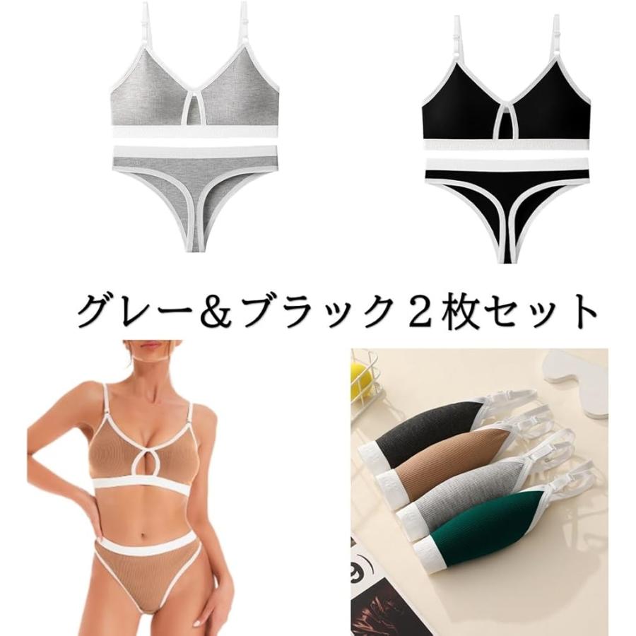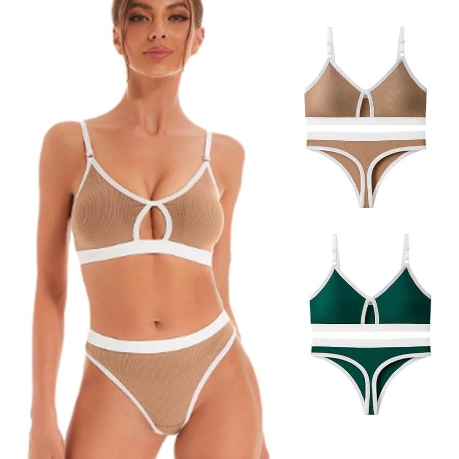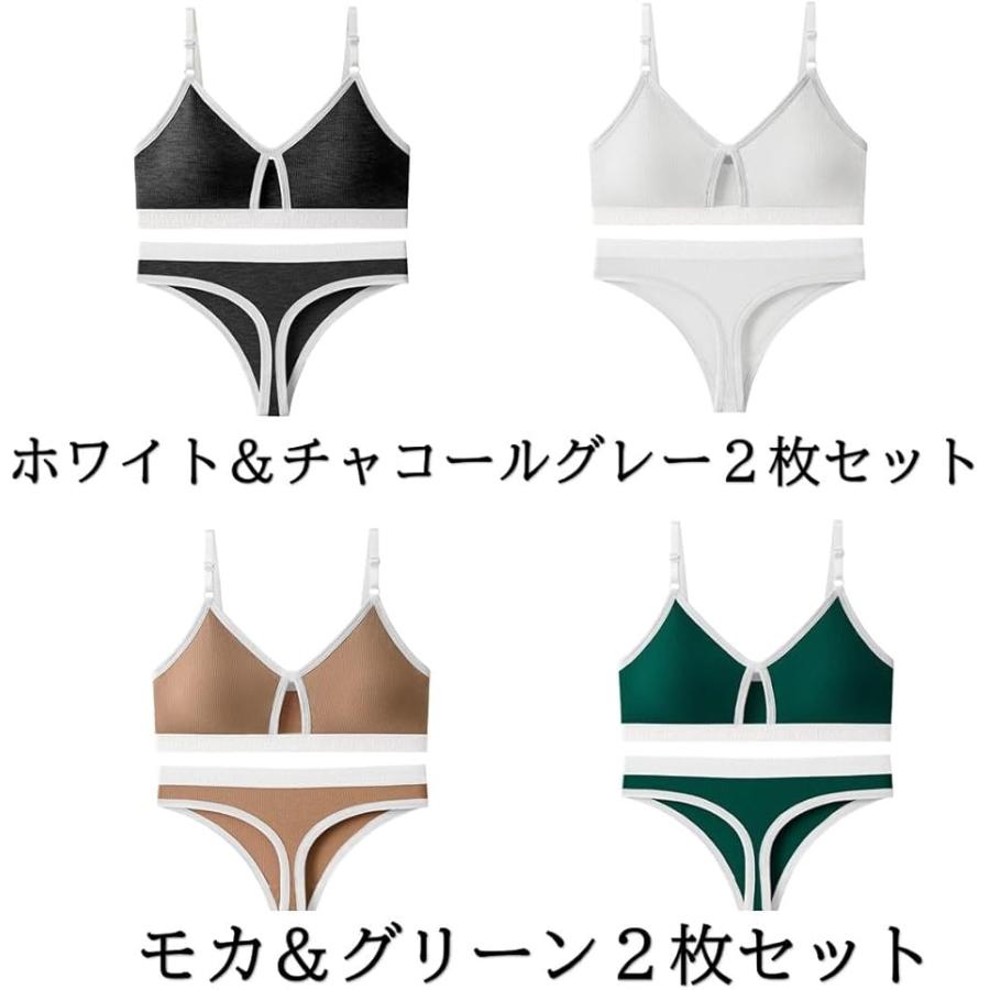 スポーツブラ、ノンワイヤー、ショーツ、Tバックが揃ったセット。
