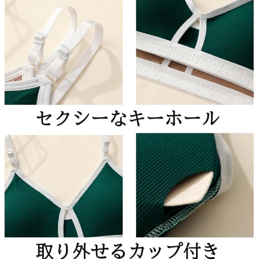 スポーツブラ 上下 セット セクシー Tバック キーホール フリーサイズ 2枚 ノンワイヤー F(モカグリーン, Free Size)