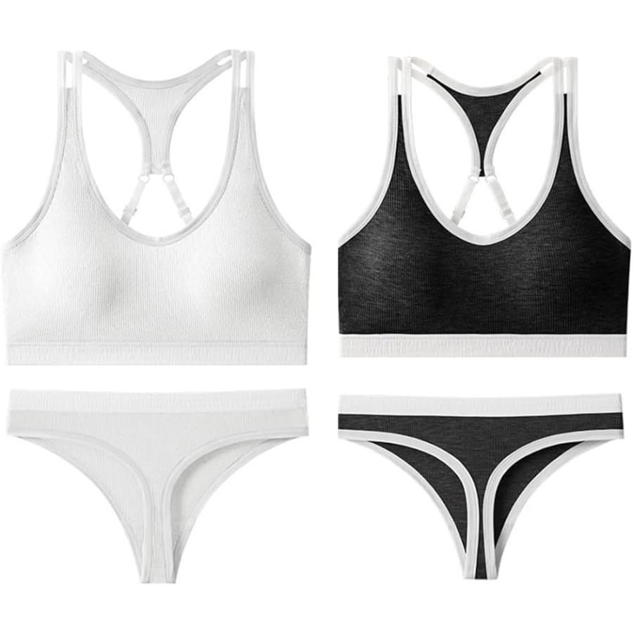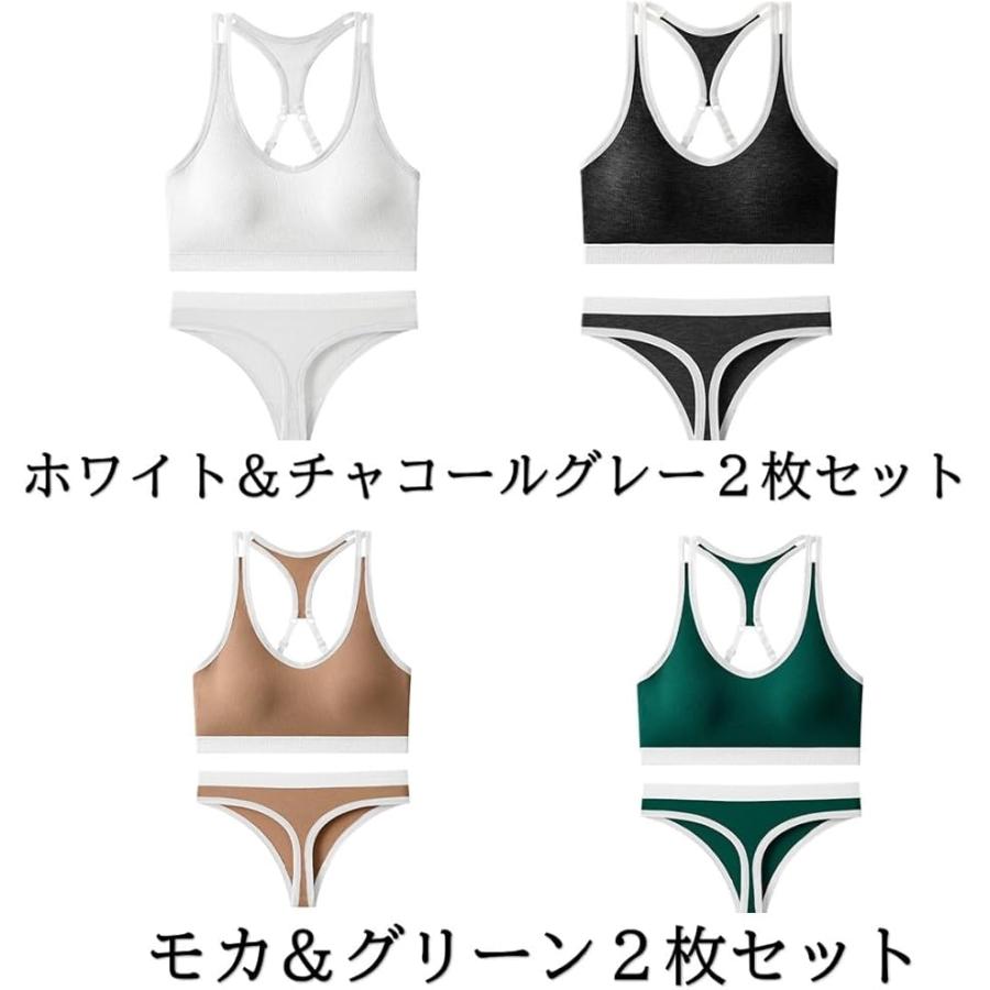 スポーツブラ、ノンワイヤー、ショーツ、Tバックが揃ったセット。