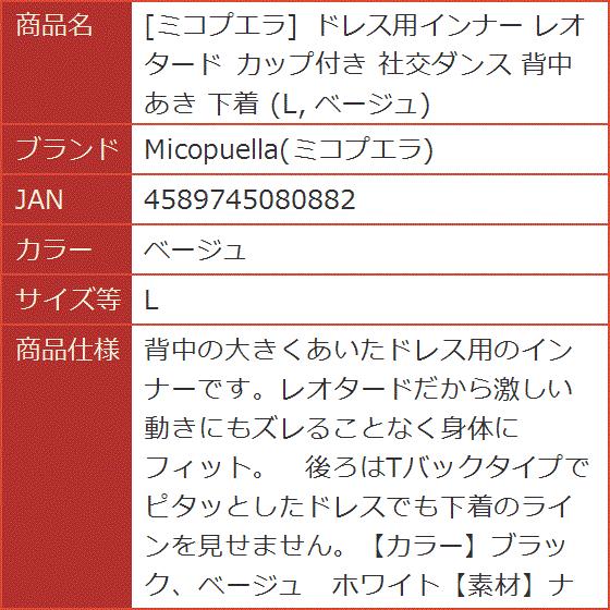 ドレス用インナー レオタード カップ付き 社交ダンス 背中あき 下着(ベージュ, L)