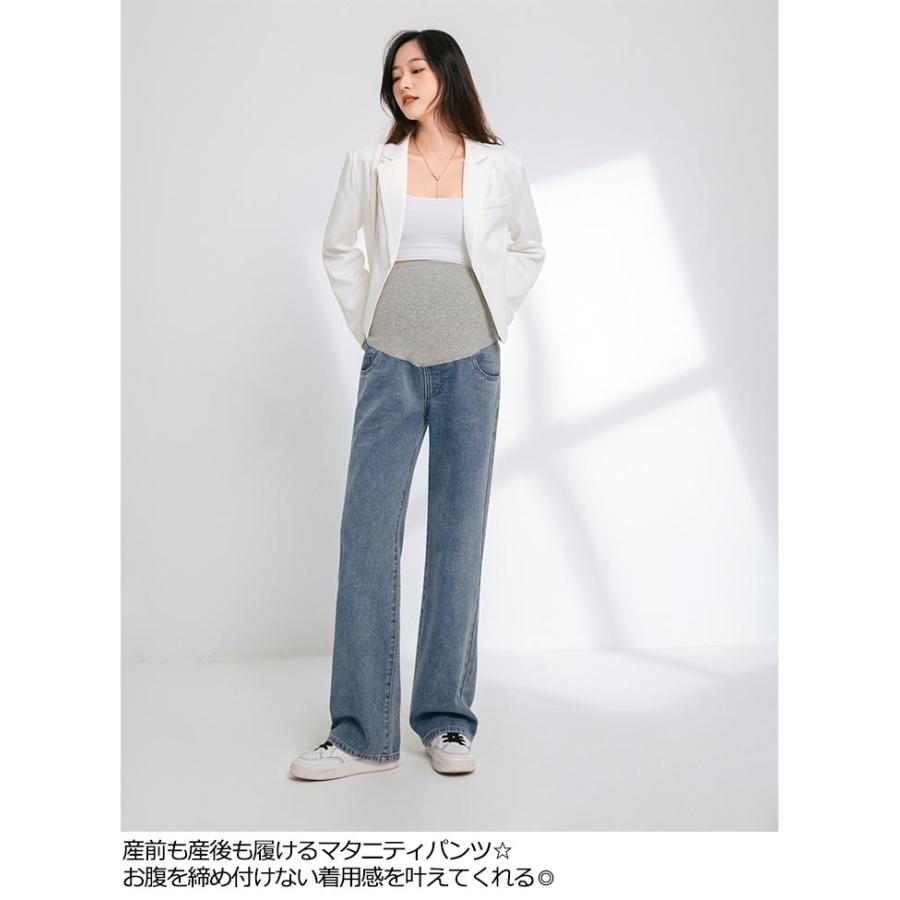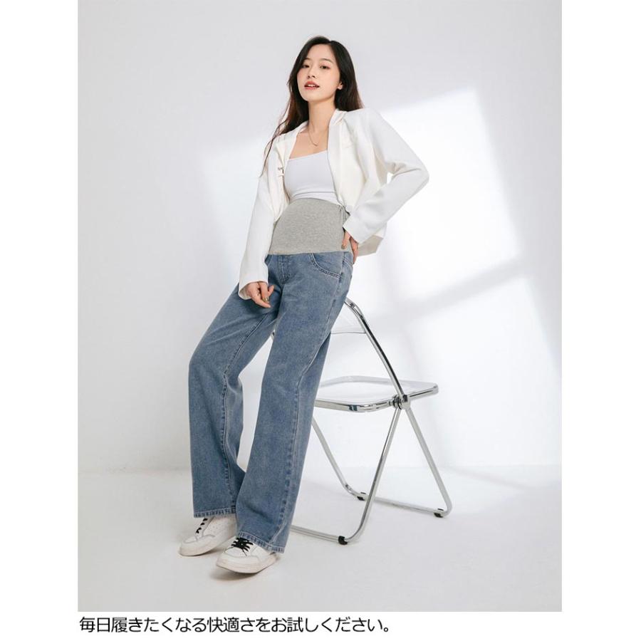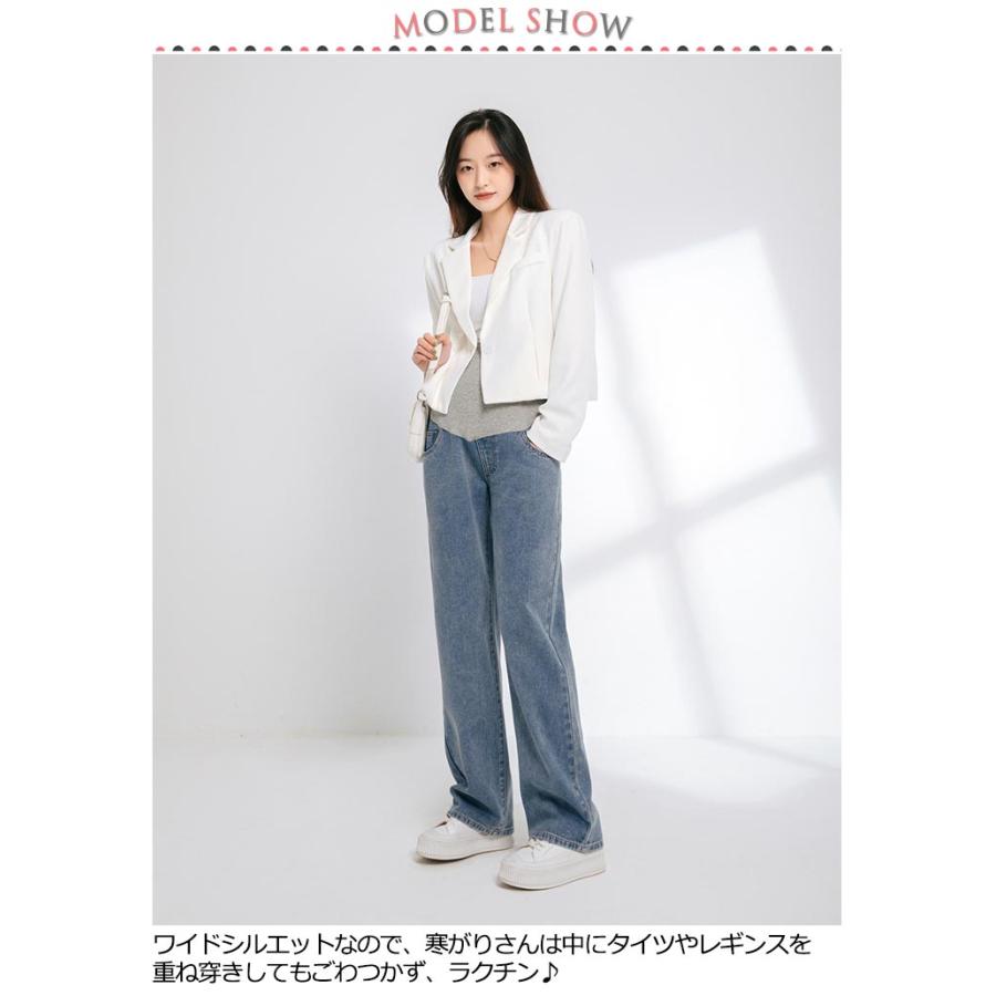 マタニティ デニムパンツ ワイドパンツ デニム パンツ マタニティパンツ 10分丈 妊娠 妊婦 デニムワイドパンツ 産前産後 腹包み アジャスター 調