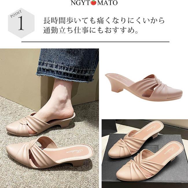 ミュールパンプス かかとなし ミュールサンダル PVC 軽量 ラバーシューズ レインシューズ 雨晴兼用 太めヒール 履きやすい 歩きやすい 梅雨対策 おしゃれ