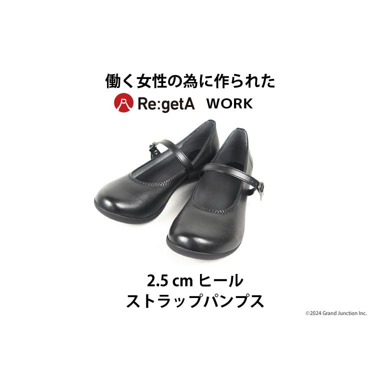 リゲッタワーク リゲッタ パンプス ぺたんこ 痛くない 歩きやすい ストラップ ローヒール 黒 pumps