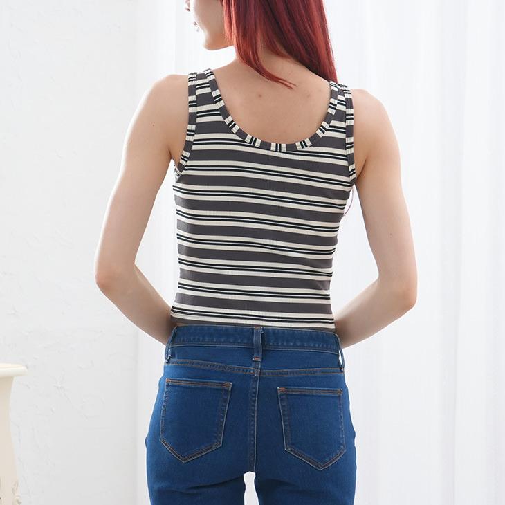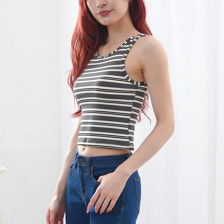 リブ ベアトップ ハーフトップ ブラトップ ノンワイヤー カップ付き ボーダー柄 トップス 涼しい 涼感 レディース M-L