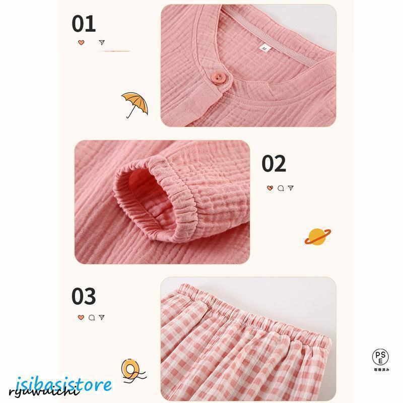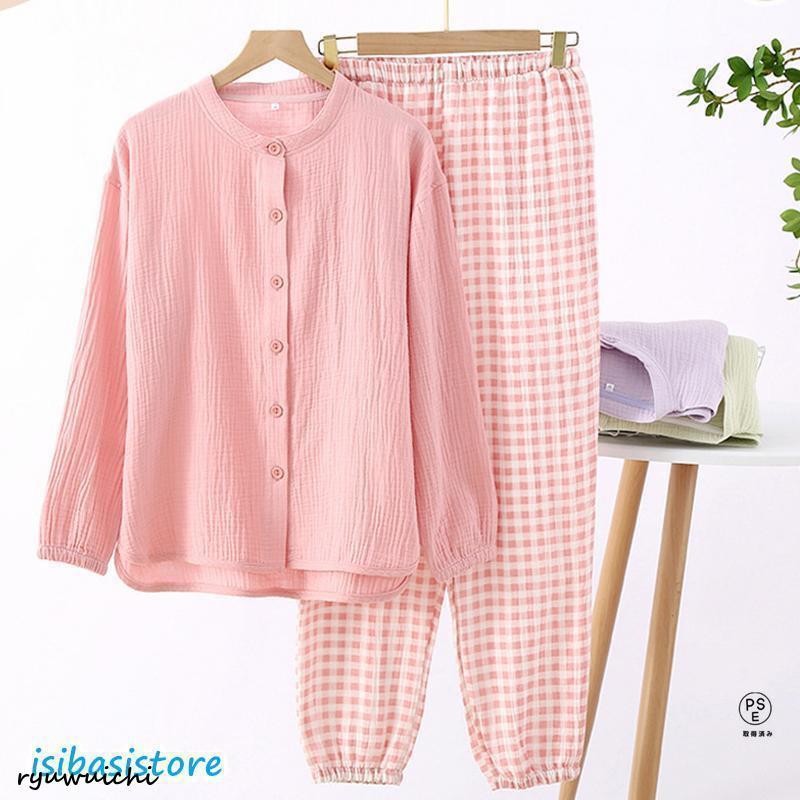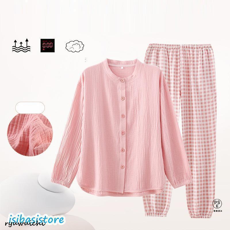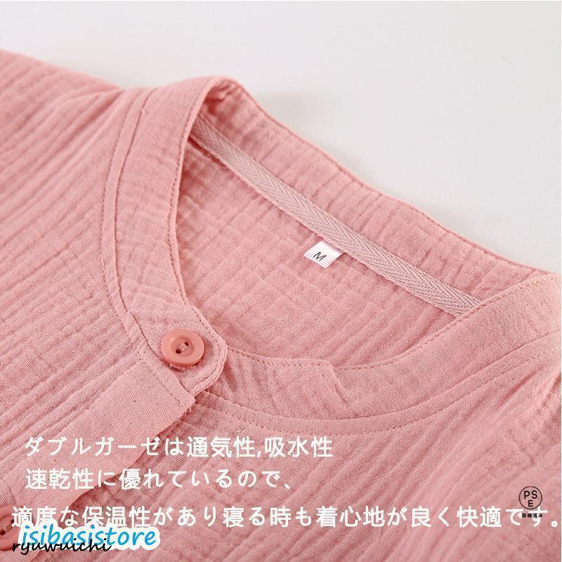ルームウェア パジャマ レディース 二重ガーゼ 綿100% 前開き 長袖 半袖 長ズボン 春 夏 秋 ダブルガーゼ ガーゼパジャマ シニア 冷え性対策