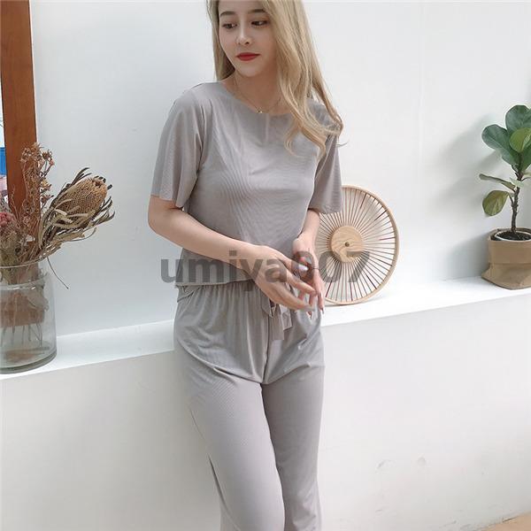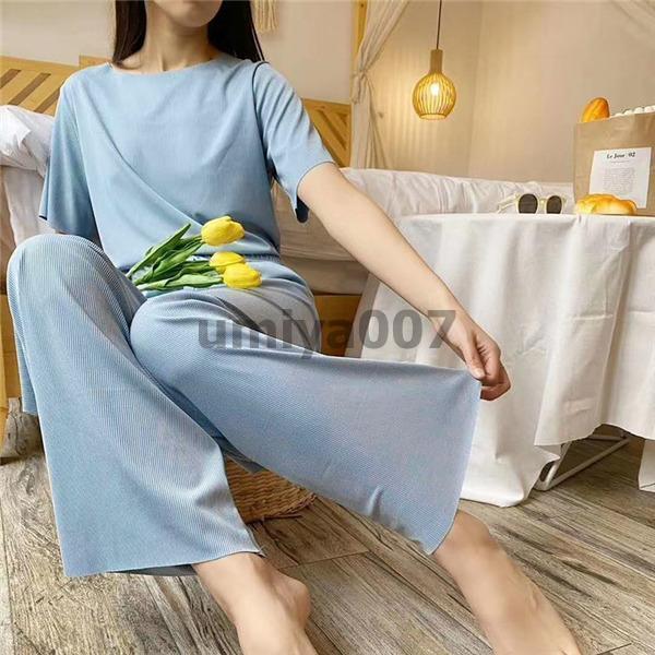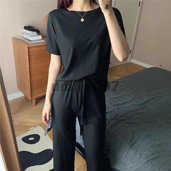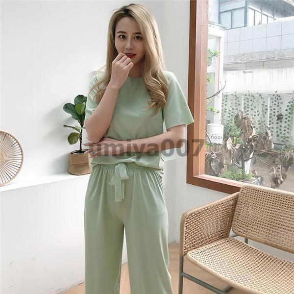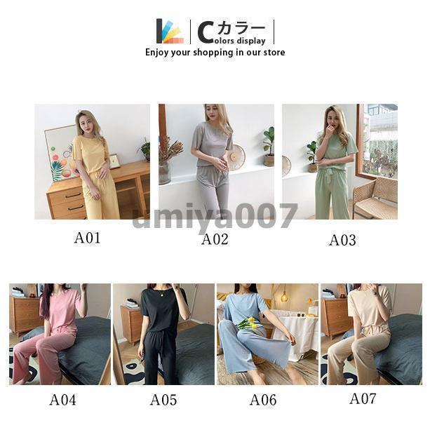 ルームウェア レディース 接触冷感 夏 パジャマ 上下 セットアップ 部屋着 寝巻き 半袖 長ズボン ロングパンツ 可愛い サラサラ リラックス