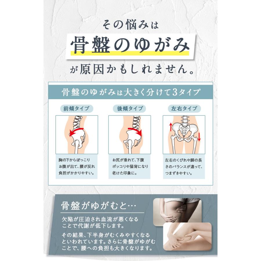 上下のストレッチバンドが骨盤を支えて包み込むから優しく骨盤補正します。