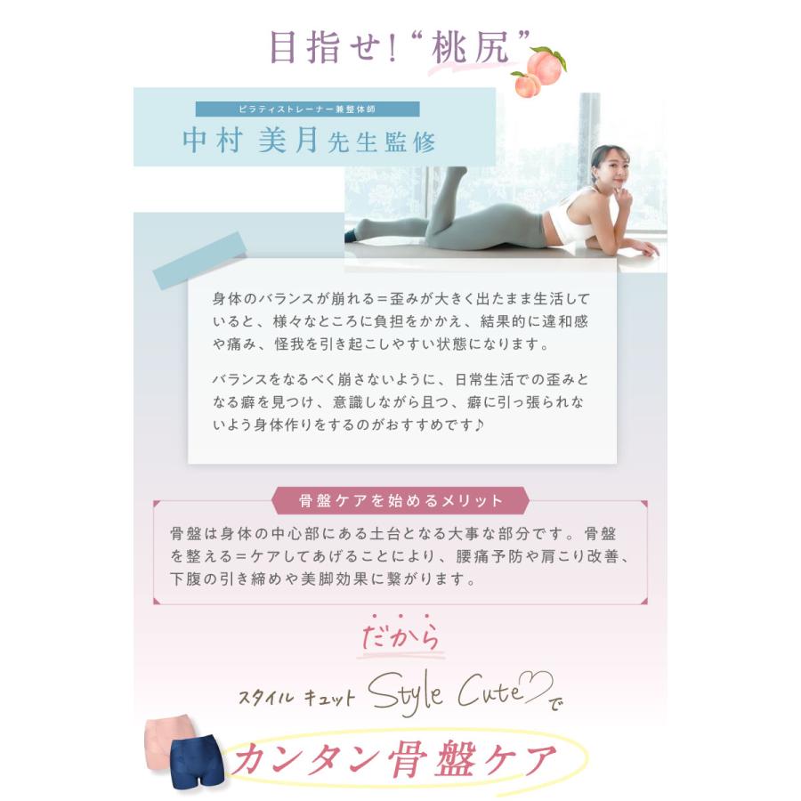 汗をかいても乾きやすいスパデックス素材も配合で快適。健やか骨盤美人へ。