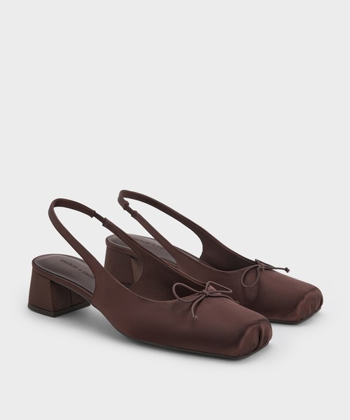CHARLES & KEITH パンプス サテン ボウスクエアトゥスリングバックパンプス