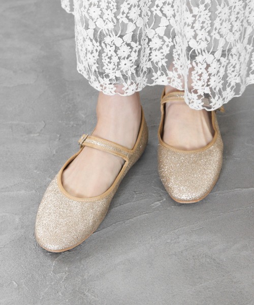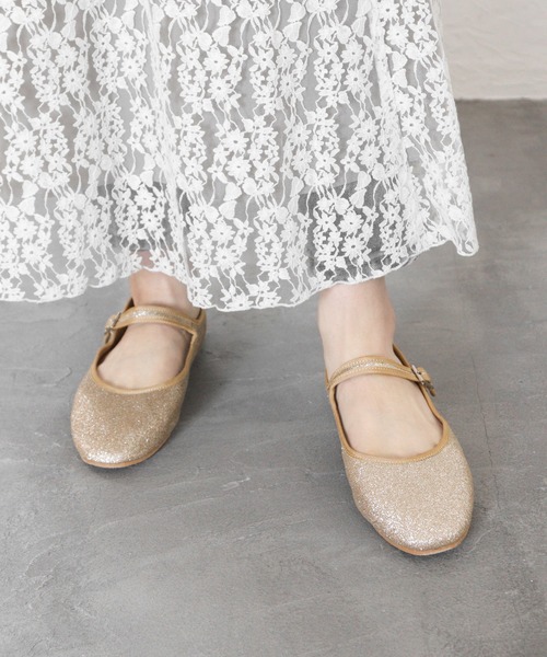 grandfleur パンプス 「21.5cm〜26.5cm」スクエアトゥベルト付きフラットパンプス