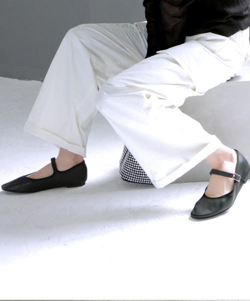 商品名:【21.5cm〜26.5cm】スクエアトゥベルト付きフラットパンプス