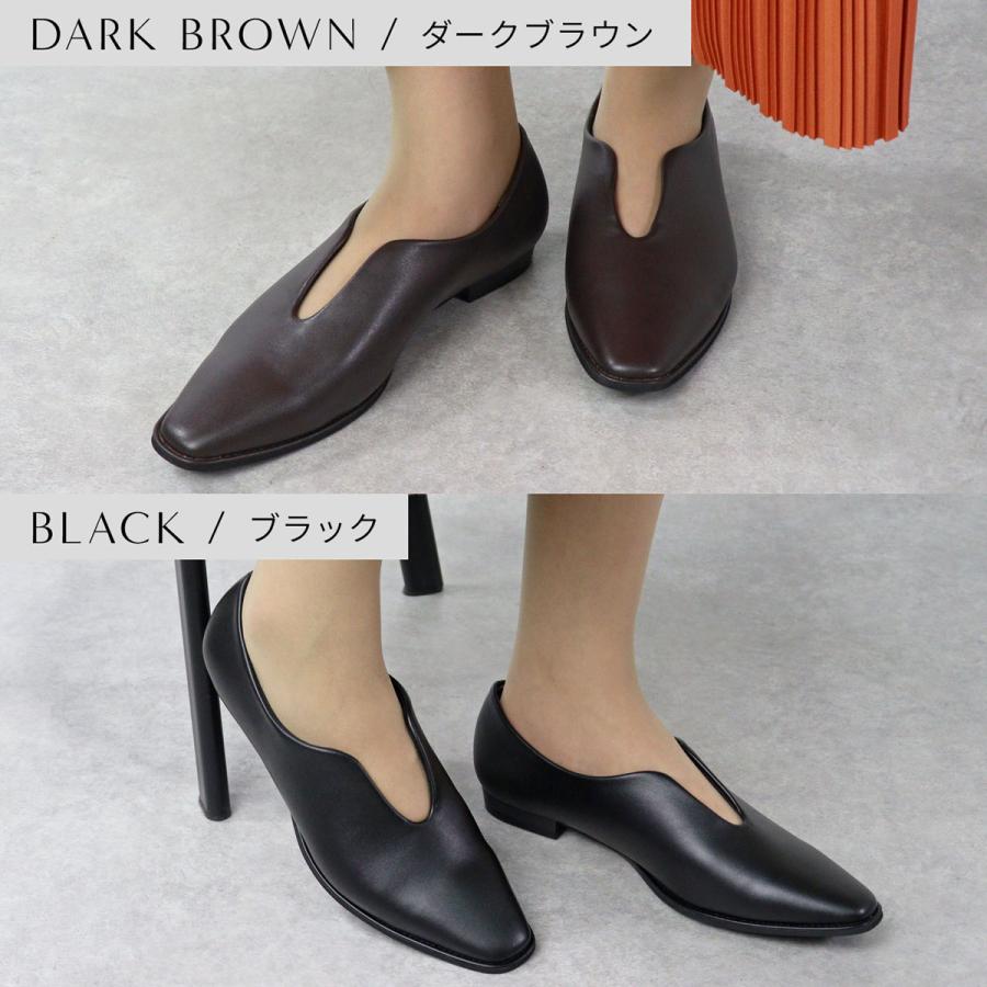2wayスクエアトゥVカットフラットバブーシュパンプス