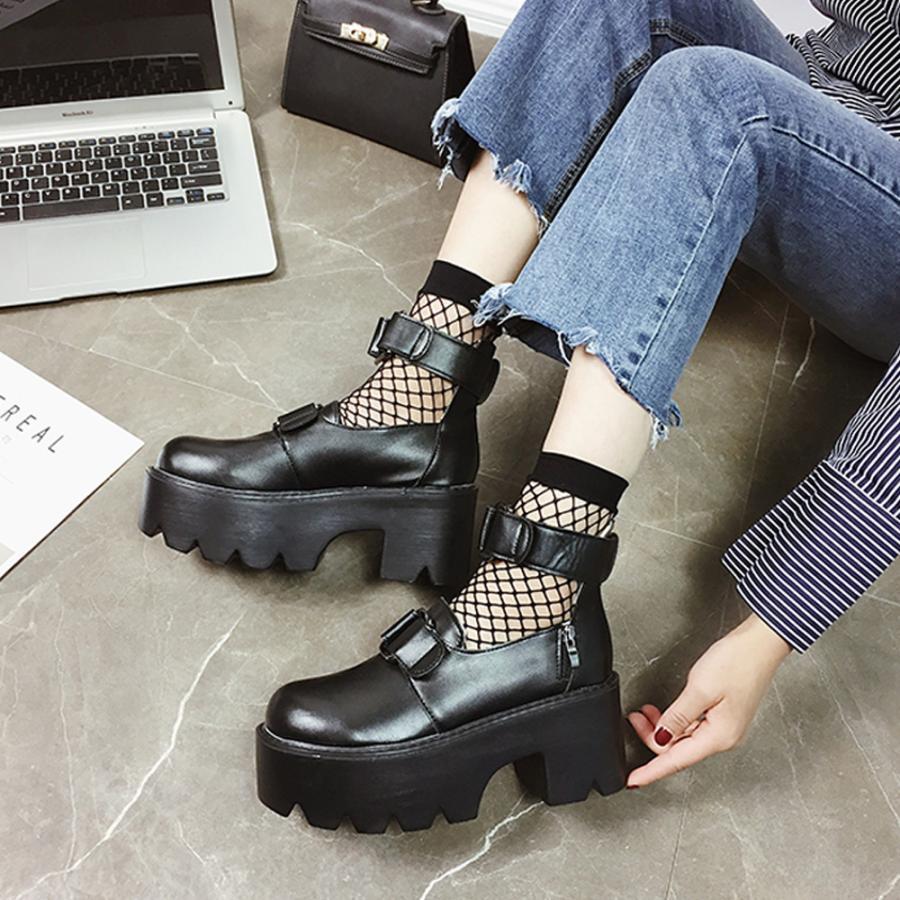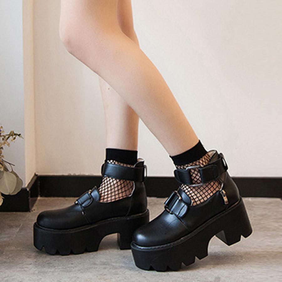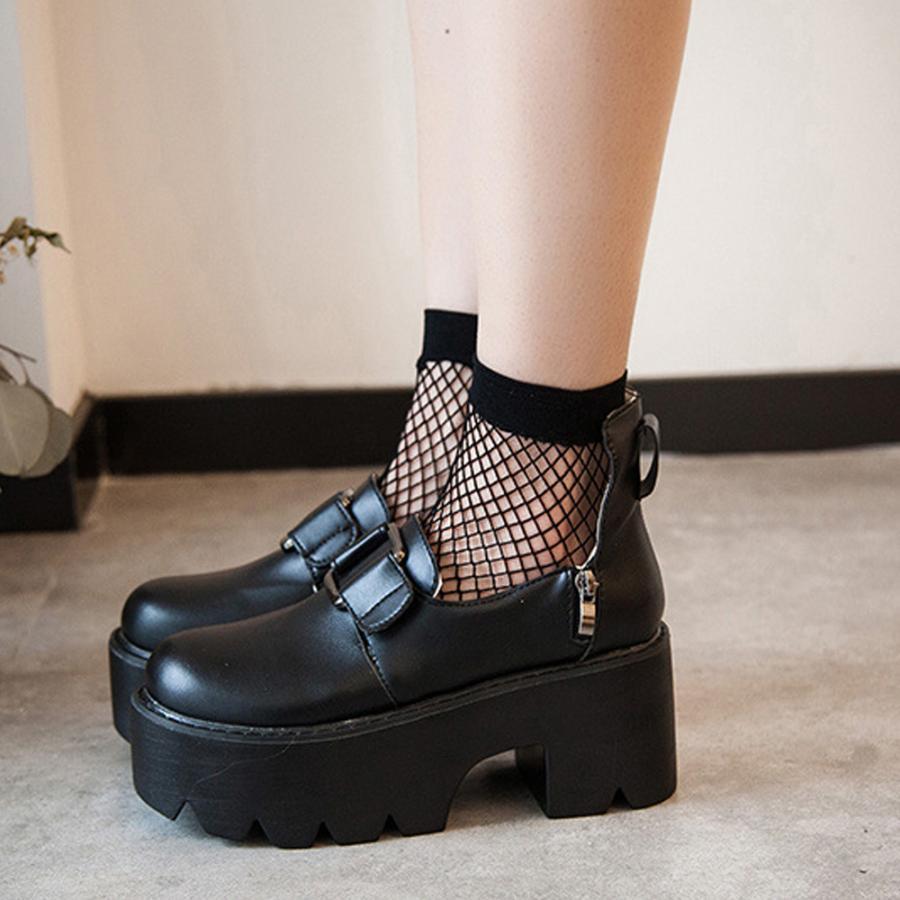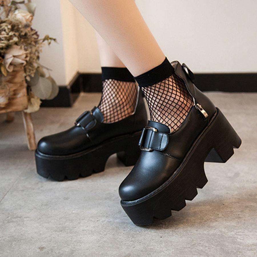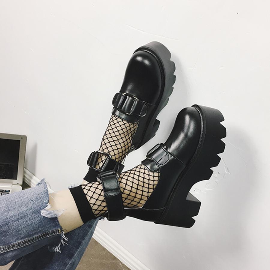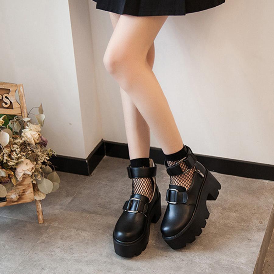 韓国 ラウンドトゥ おでこ靴 大人 厚底シューズ アンクルストラップ メイド 痛くない ゴスロリ 靴 コスプレ お嬢様