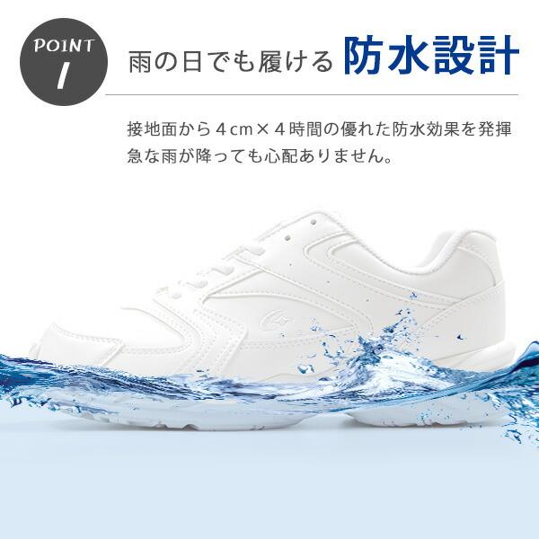 雨の日も履ける「防水設計」でムーンスター独自の特許構造を採用。クッション性も良く、普段履きからウォーキング、通学履きに最適。