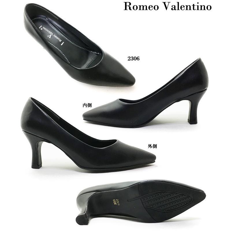 Romeo Valentino 送料無料 パンプス レディース ロメオバレンチノ 女性 婦人 リクルート 通勤 フォーマル オフィス シンプル 就活 冠婚葬祭 黒 22.0cm~25.0cm ポイント消化