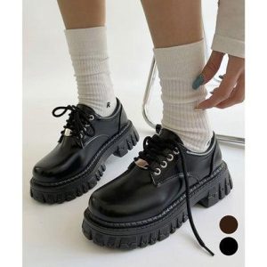 ミニミニストア miniministore 厚底 ローファー 編み上げ 韓国風 (ブラウン)