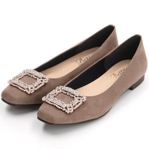 【洗える/撥水】ビジュー付 スクエア パンプス