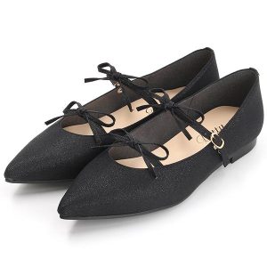 【25春夏新作】ポインテッドトゥグリッターラメ ダブルリボン パンプス