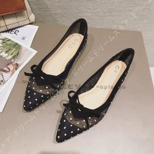 【値下げ】シースルーパンプス レース 大きいサイズ 痛くない オフィス ローヒール ぺたんこ バレエシューズ フラットパンプス ポインテッドトゥ 走れる