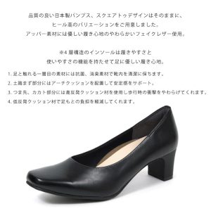 フォーマルパンプス 日本製 スクエアトゥ 抗菌消臭 22cm〜24.5cm ar45300-45310 アキリコ