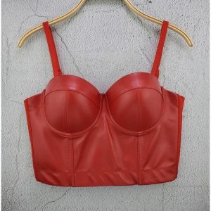 レディースレザービスチェ ナイトクラブ演出パーティーPU革ブラトップ キャミソール タンクトップ イベント ダンス衣装ベアトップス ブラジャー全店